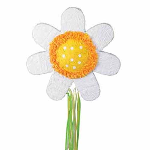 The bright pull-string Daisy Pinata is in the shape of a white daisy with a yellow center and green strings to look like a flower stem - a cheery addition to your daisy party supplies and decorations Pull string pinata Measures approximately 12 inches across Read More..