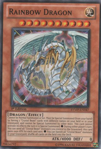 Yu-Gi-Oh is a strategic trading card game in two players Duel each other using a variety of Monster Spell and Trap Cards to defeat their opponents monsters and be the first to drop the others Life Points to 0brbrbCard Nameb Rainbow DragonbrbrbCard Typeb Effect Monsterb Read More..